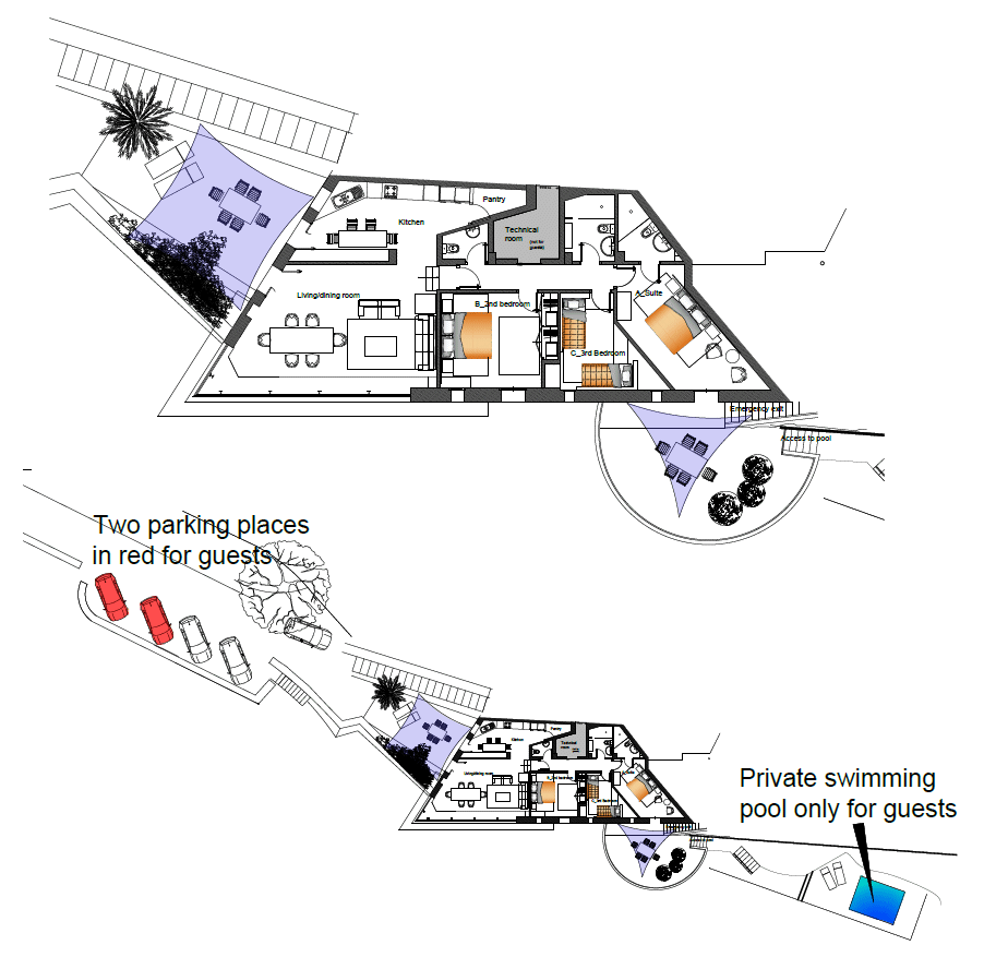 Kitchen, Living & Dining Room, The Suite, Bedroom A, Bedroom B, the Bathrooms
