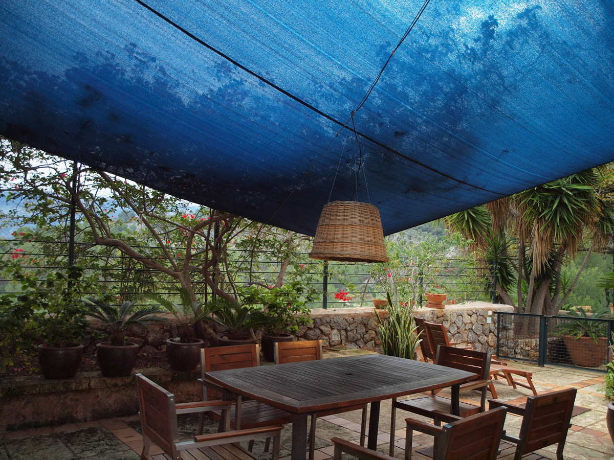 Part of the terrace is covered by a sail-like awning which protects you from the sun.
