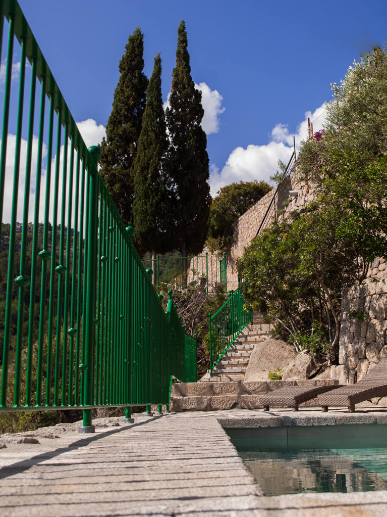 With stunning views of the Tramuntana Mountain Range and the bay of the Port of Sóller, it is a haven for relaxation. The pool comes with a sun-soaked solarium, perfect for basking in the Mediterranean sun. Stone steps connect the pool to the private terrace right in front of the main suite, adding an exclusive touch to your stay. Whether you seek sunrise serenity or moonlit magic, our pool promises unforgettable moments.