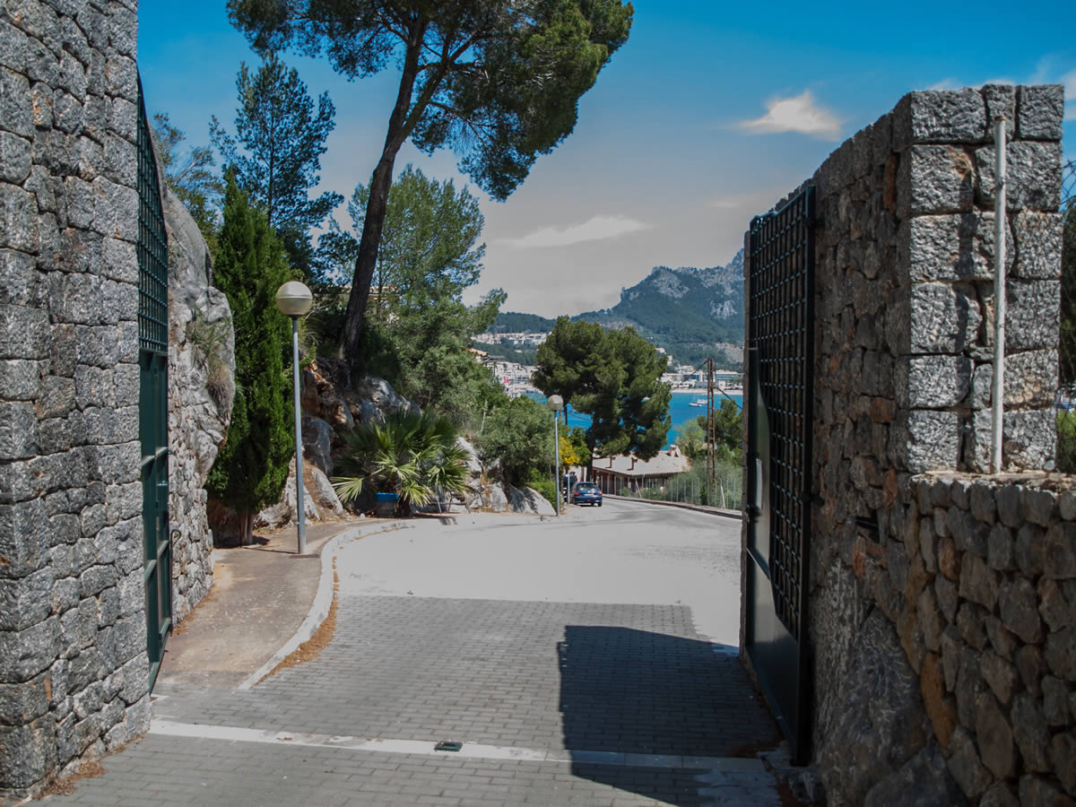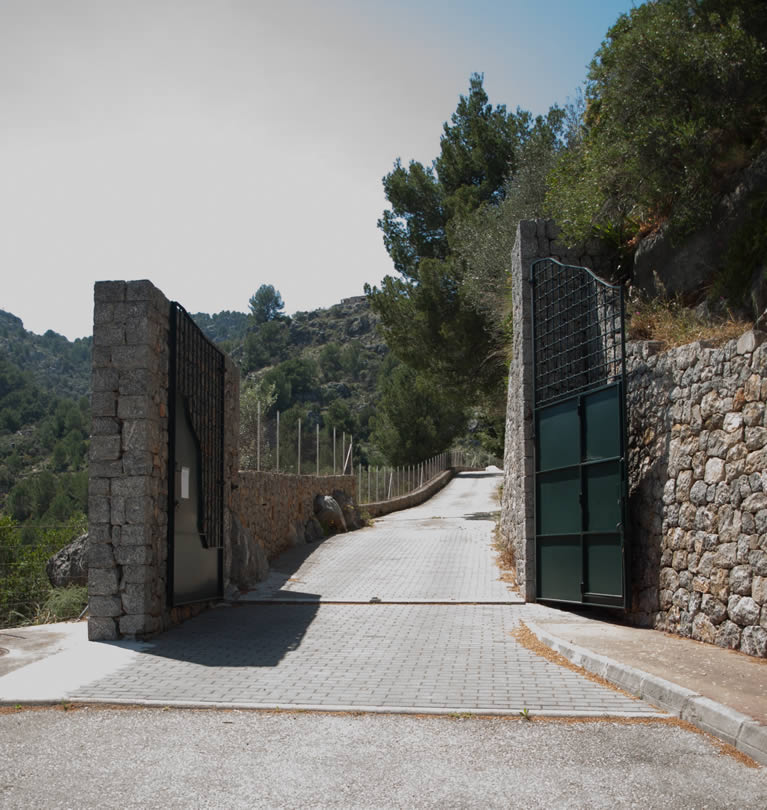 The municipal town road stops just before the main gates. The private road after the gates is not public and is only for use by the residents of the Es Vermell Estate.